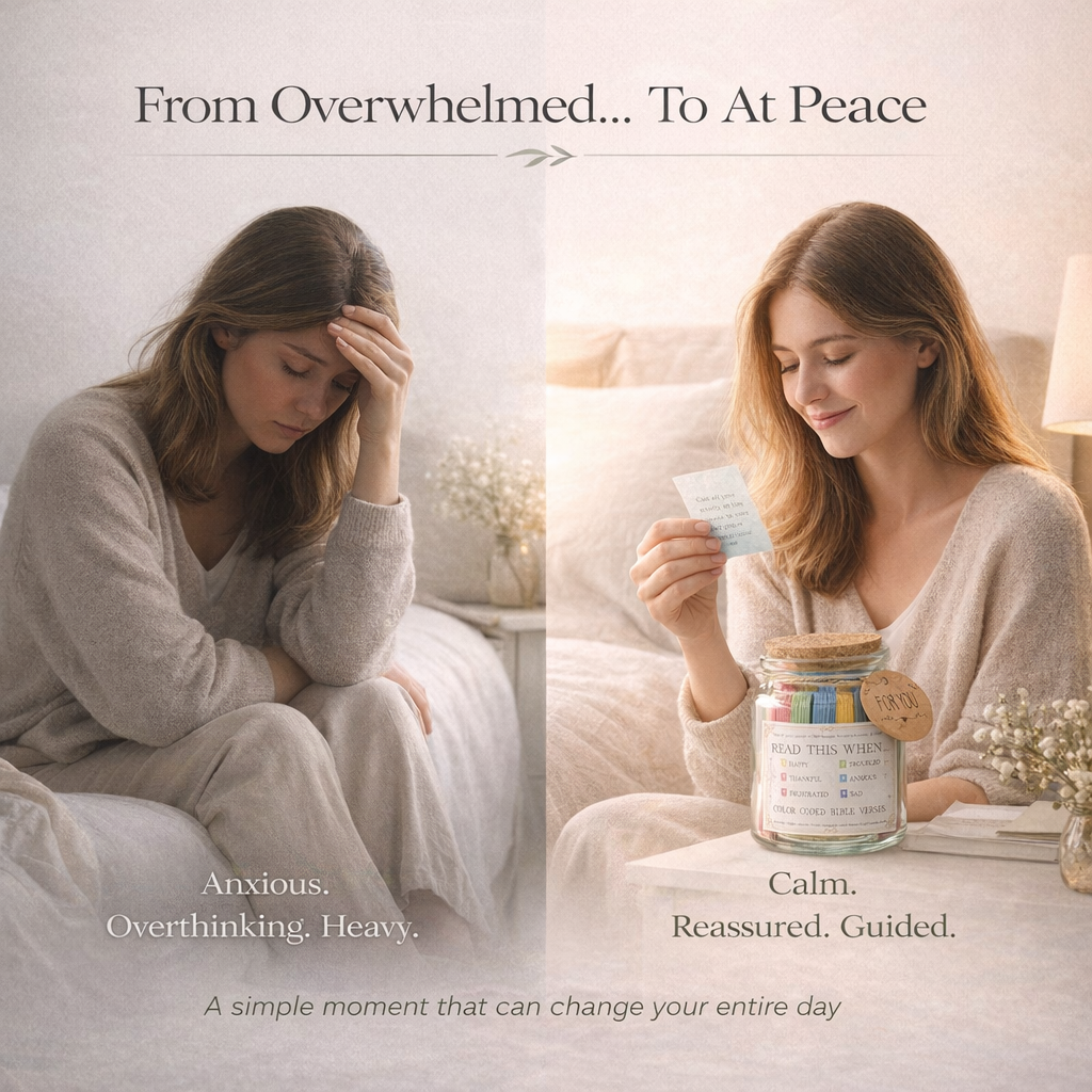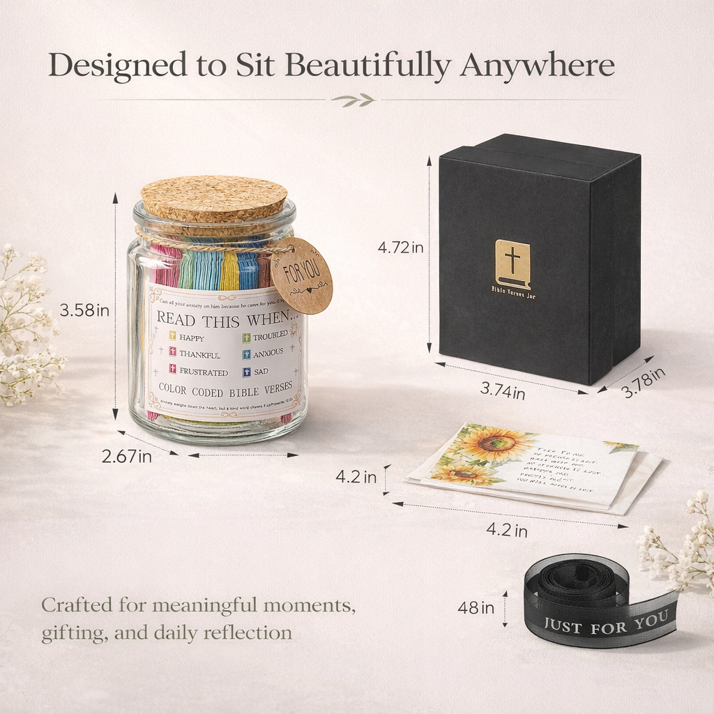 Each jar is a keepsake — a quiet moment with God built into your morning routine, your desk, your nightstand. Draw a verse. Breathe. Let Him speak.
